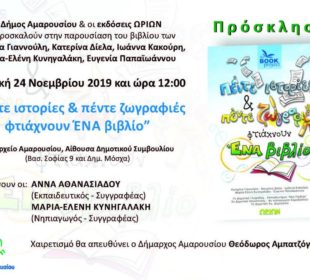 Παρουσίαση Βιβλίου “Πέντε ιστορίες και πέντε ζωγραφιές φτιάχνουν ένα βιβλίο” την Κυριακή 24 Νοεμβρίου 2019 και ώρα 12.00 στο Δημαρχείο Αμαρουσίου Η ...Νέες κυκλοφορίες από τις Εκδόσεις ΨΥΧΟΓΙΟΣ