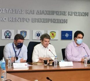 Ολοκληρώθηκε η ευρεία σύσκεψη που πραγματοποιήθηκε σήμερα στο Κέντρο Επιχειρήσεων της Πολιτικής Προστασίας υπό τον Υπουργό Προστασίας του Πολίτη, Μιχάλη Χρυσοχοΐδη, τον Υφυπουργό ...Ένα βήμα πριν από τη λήψη νέων μέτρων στη Μύκονο και την Ίο – Για ...