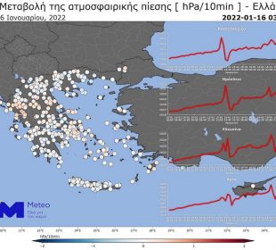 Κρουστικό κύμα του ηφαιστείου Hunga Tonga: Επίγειες καταγραφές μεταβολών ατμοσφαιρικής πίεσης στην Ελλάδα Σύνταξη άρθρου: Σ. Ντάφης, Γ. Κύρος, Κ. Λαγουβάρδος ΕΑΑ-Πεντέλη, ...