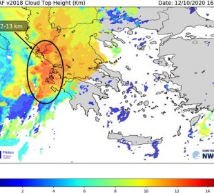 Το μέτωπο των καταιγίδων κατά τη διάρκεια της νύχτας προς τις πρώτες πρωινές ώρες της Τρίτης 13/10, κινήθηκε ανατολικά δίνοντας μεγάλα ύψη βροχής ...Στα 12-13 χιλιόμετρα οι κορυφές των καταιγιδοφόρων νεφών