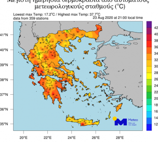 Δελτίο καιρού για Δευτέρα 24/8 Ηλιοφάνεια και ζέστη στις περισσότερες περιοχές της χώρας με μέγιστες θερμοκρασίες έως 37-38 βαθμούς τοπικά. Όμβροι ή μεμονωμένες καταιγίδες ...Πυρκαγιά στη Μάνη: Ανάλυση πυρό-μετεωρολογικών συνθηκών
