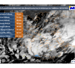 Εικόνα. Τα οκτώ μεγαλύτερα ύψη βροχής του Σαββάτου 18/12/2021, όπως καταγράφτηκαν από το δίκτυο αυτόματων μετεωρολογικών σταθμών του Εθνικού Αστεροσκοπείου Αθηνών ...Μεγάλη πτώση της θερμοκρασίας αύριο Σάββατο 18 Δεκεμβρίου 2021
