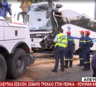 Πούλμαν καρφώθηκε σε κολώνα στον Πειραιά