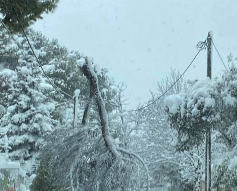 Δίκτυο από την πτώση δέντρων που υποχωρούν υπό το βάρος του χιονιού.