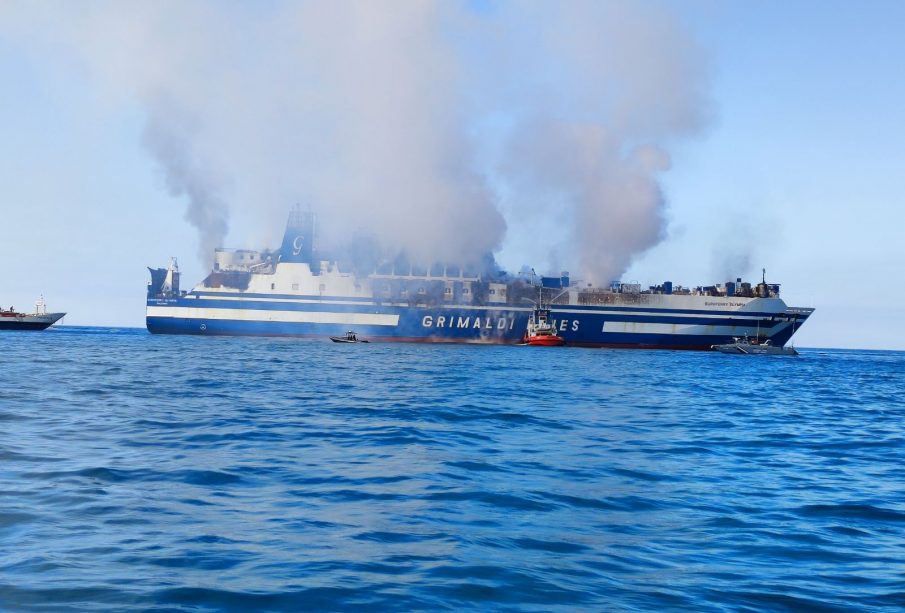 Στο βίντεο ντοκουμέντο φαίνεται το φλεγόμενο επιβατηγό πλοίο «Euroferry Olympia» εκπέμπει σήμα κινδύνου.
