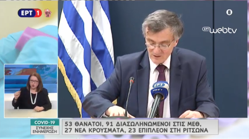 Τα νέα κρούσματα που καταγράφηκαν το τελευταίο εικοσιτετράωρο είναι 27 συν 23 κρούσματα σε δομή φιλοξενείας στην Ριτσώνα και το σύνολο των κρουσμάτων στη χώρα μας ανέρχεται πλέον στα 1514 χωρίς να υπολογίζονται τα κρούσματα στο πλοίο, ανακοίνωσε ο εκπρόσωπος του υπουργείου Υγείας για τον κορονοϊό, Σωτήρης Τσιόδρας.