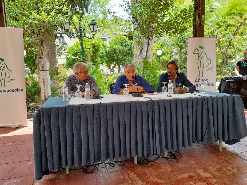 Συνέντευξη τύπου για την παρουσίαση του Καλοκαιρινού Πολιτιστικού Προγράμματος της Διεύθυνσης Αθλητισμού & Πολιτισμού του Δήμου Αμαρουσίου δόθηκε στον κήπο της Βορέειου Βιβλιοθήκης την Πέμπτη 17 Ιουνίου 2021, από τον Δήμαρχο Αμαρουσίου Θεόδωρο Αμπατζόγλου και τον Αντιδήμαρχο Αθλητισμού & Πολιτισμού Γιάννη Νικολαράκο.