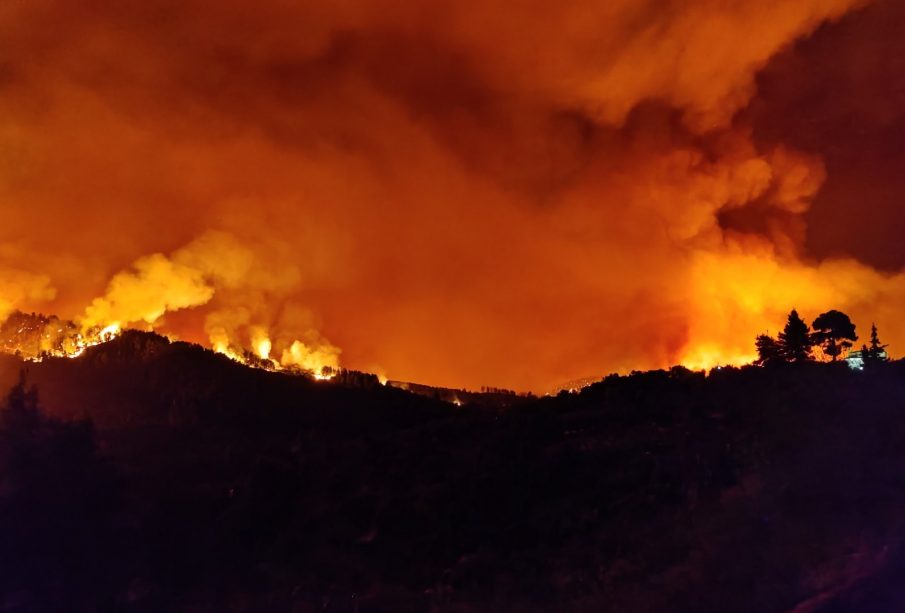 Οι πυροσβεστικές δυνάμεις συνεχίζουν το τιτάνιο έργο τους. Μάλιστα, τρεις πυροσβέστες υπέστησαν ελαφρά εγκαύματα και δέχθηκαν τις πρώτες βοήθειες. Δεν φυσάνε ισχυροί άνεμοι, ωστόσο οι φλόγες αλλάζουν κατεύθυνση συνεχώς.