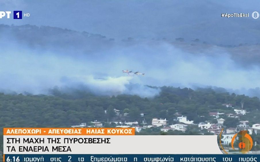 Oι μεγάλες εστίες της πυρκαγιάς είναι στις περιοχές Χάνι Δερβένι, Αιγερούσες και Ντουράκος, έξω από το Αλεποχώρι, ενώ παραμένει μεγάλο το μέτωπο της φωτιάς. Οι εστίες της παραμένουν πολλές και ενεργές, ενώ οι πυροσβεστικές δυνάμεις τις αντιμετωπίζουν δραστικά. Όσον αφορά τους ανέμους κόπασαν και είναι πλέον γύρω στα 4 μποφόρ.