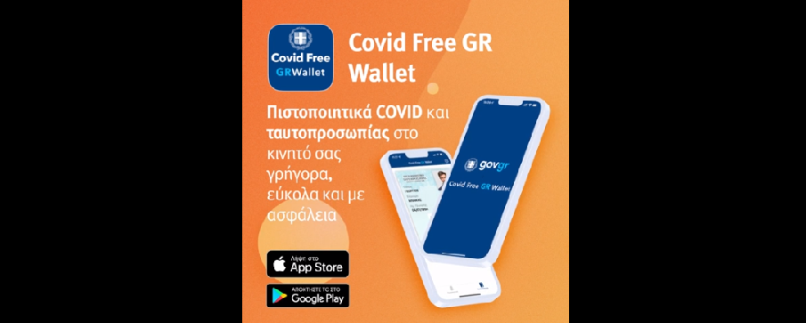 Η εφαρμογή Covid Free GR Wallet είναι διαθέσιμη για τις πλατφόρμες iOS και Android στο covidfree.gov.gr.