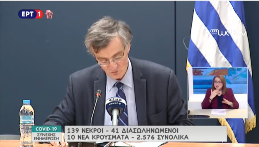 Τσιόδρας: 10 νέα κρούσματα – 2.576 συνολικά – 139 οι θάνατοι στη χώρα μας