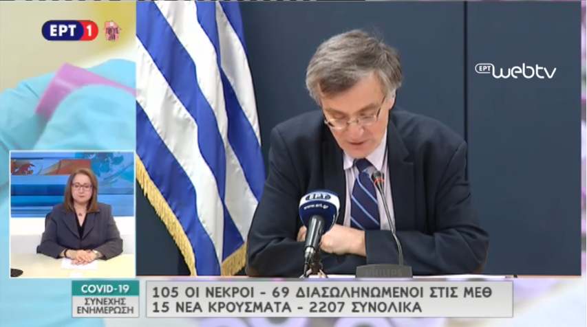 Σύμφωνα με όσα ανακοίνωσε ο εκπρόσωπος του υπουργείου Υγείας για τον κορονοϊό, Σωτήρης Τσιόδρας, 69 νοσηλεύονται διασωληνωμένοι σε ΜΕΘ, ενώ 105 είναι αυτοί που έχασαν τη ζωή τους.