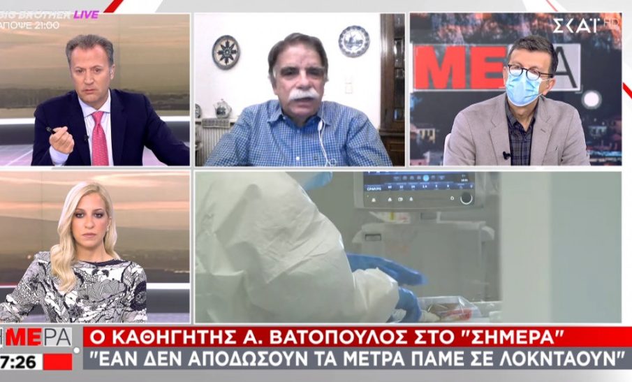 Ο καθηγητής μικροβολιογίας Αλκιβιάδης Βατόπουλος μιλώντας στην τηλεόραση του ΣΚΑΪ ανέφερε, μεταξύ άλλων, πως εάν δεν αποδώσουν τα μέτρα που ανακοινώνει ο Πρωθυπουργός σήμερα και εφόσον η πανδημία συνεχίζει να διασπείρεται ανεξέλεγκτα πάμε σε λοκνταουν.