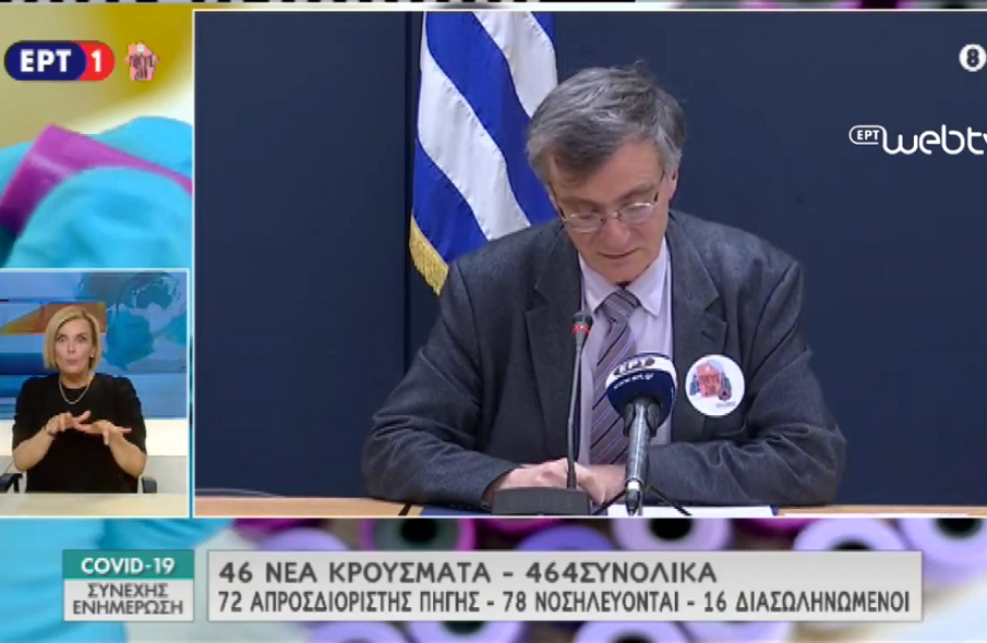Σαράντα έξι νέα επιβεβαιωμένα κρούσματα κορονοϊού στην Ελλάδα ανακοίνωσε ο λοιμωξιολόγος και εκπρόσωπος του υπουργείου Υγείας Σωτήρης Τσιόδρας στην καθιερωμένη ενημέρωση των ιατρικών συντακτών. Έτσι τα συνολικά κρούσματα ανέρχονται σε 464 .