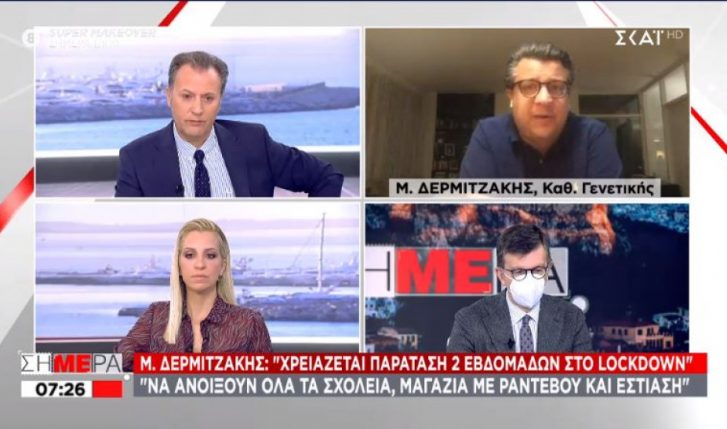 Δερμιτζάκης σε ΣΚΑΪ: Παράταση lockdown για 2 εβδομάδες – Η πρόταση για «έξυπνα» μέτρα