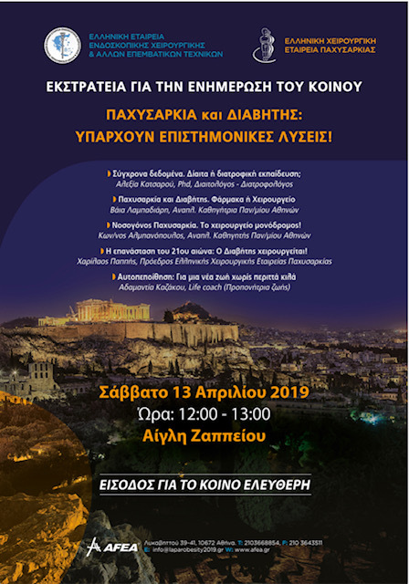Εκστρατεία ενημέρωσης του κοινού | Παχυσαρκία και Διαβήτης: Υπάρχουν επιστημονικές λύσεις | 13/4 στην Αίγλη Ζαππείου