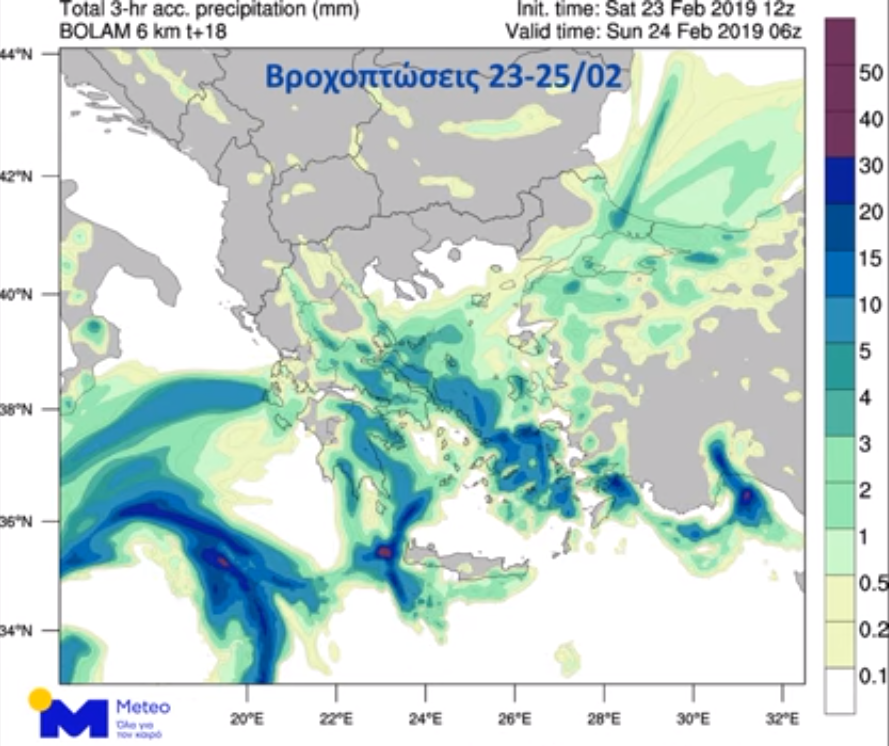 Προβλεπόμενες βροχοπτώσεις 23-25/02 και προβλεπόμενη χιονοκάλυψη 23-24/02
