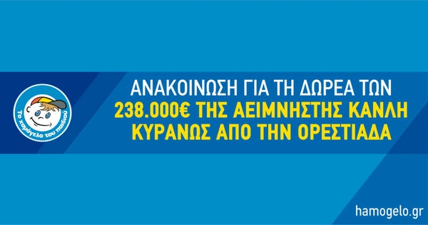 Ανακοίνωση του Οργανισμού «Το Χαμόγελο του Παιδιού» για τη δωρεά των 238.000€ της Κανλή Κυράνως