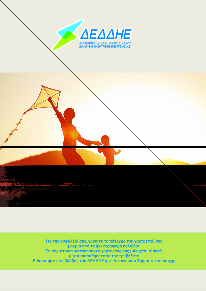 Ο Διαχειριστής Ελληνικού Δικτύου Διανομής Ηλεκτρικής Ενέργειας (ΔΕΔΔΗΕ) σας συμβουλεύει να μην πετάτε το χαρταετό σας κοντά σε ηλεκτροφόρα καλώδια, καθώς υπάρχει σοβαρός κίνδυνος ηλεκτροπληξίας για εσάς και διακοπής της παροχής ρεύματος στη γύρω περιοχή.