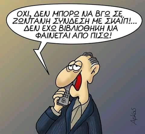 Ανέκδοτο κατάντησε η συνήθεια πολιτικών, γιατρών και άλλων ειδημόνων να βγαίνουν ζωντανά, στα κανάλια, με φόντο τη βιβλιοθήκη πίσω τους.
