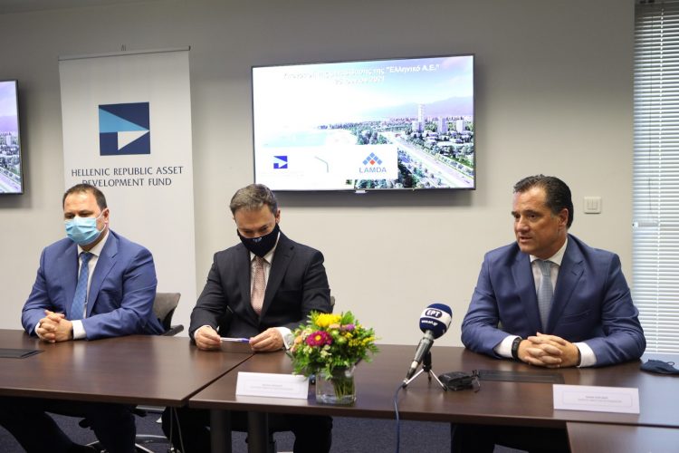 Παρουσία των Υπουργών Οικονομικών, κ. Χρήστου Σταϊκούρα και Ανάπτυξης & Επενδύσεων, κ. Άδωνι Γεωργιάδη καθώς και του Αναπληρωτή Υπουργού Ανάπτυξης & Επενδύσεων, κ. Νίκου Παπαθανάση υπεγράφη σήμερα η σύμβαση μεταβίβασης του συνόλου των μετοχών της «Ελληνικό Α.Ε.» στην HELLINIKON GLOBAL I S.A., θυγατρική της Lamda Development.