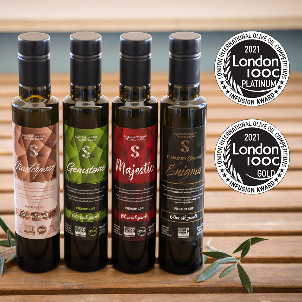 Ειδικότερα, τα δώδεκα (12) βιολογικά gourmet ελαιόλαδα των ελαιώνων Σακελλαρόπουλου που βραβεύθηκαν στον LONDON IOOC για το 2021 είναι: