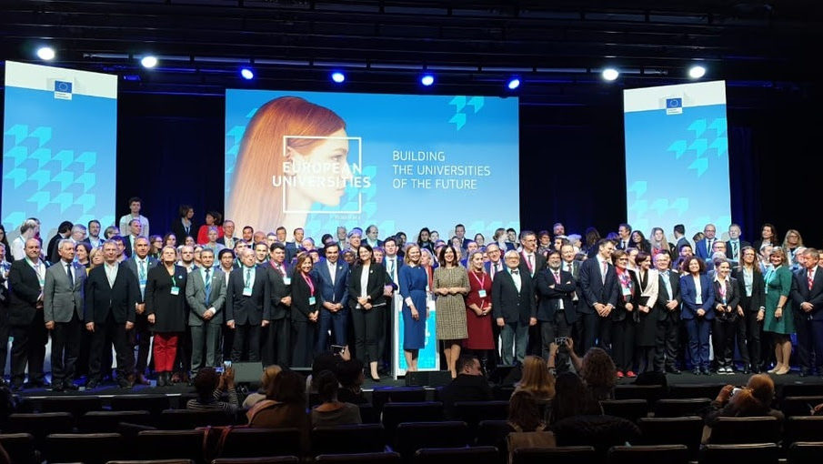 Στην πανηγυρική εκδήλωση παρουσιάστηκαν σε πλήθος πολιτικών και μελών της πανευρωπαϊκής εκπαιδευτικής κοινότητας οι 17 επιλεγέντες συνασπισμοί Πανεπιστημίων που θα υλοποιήσουν το πιλοτικό πρόγραμμα “Ευρωπαϊκά Πανεπιστήμια”. Η πρωτοποριακή αυτή πρωτοβουλία αφορά στη δημιουργία συμμαχιών μεταξύ Πανεπιστημίων των κρατών-μελών της Ευρωπαϊκής Ένωσης, εντός των οποίων θα δύνανται να πραγματοποιηθούν συνεργασίες, κοινά προγράμματα, ανταλλαγές προσωπικού και φοιτητών, ευέλικτες μορφές διδασκαλίας κ.ά., δίνοντας την ευκαιρία στους φοιτητές να αποκτήσουν πτυχία συνδυάζοντας σπουδές σε περισσότερες χώρες της ΕΕ.