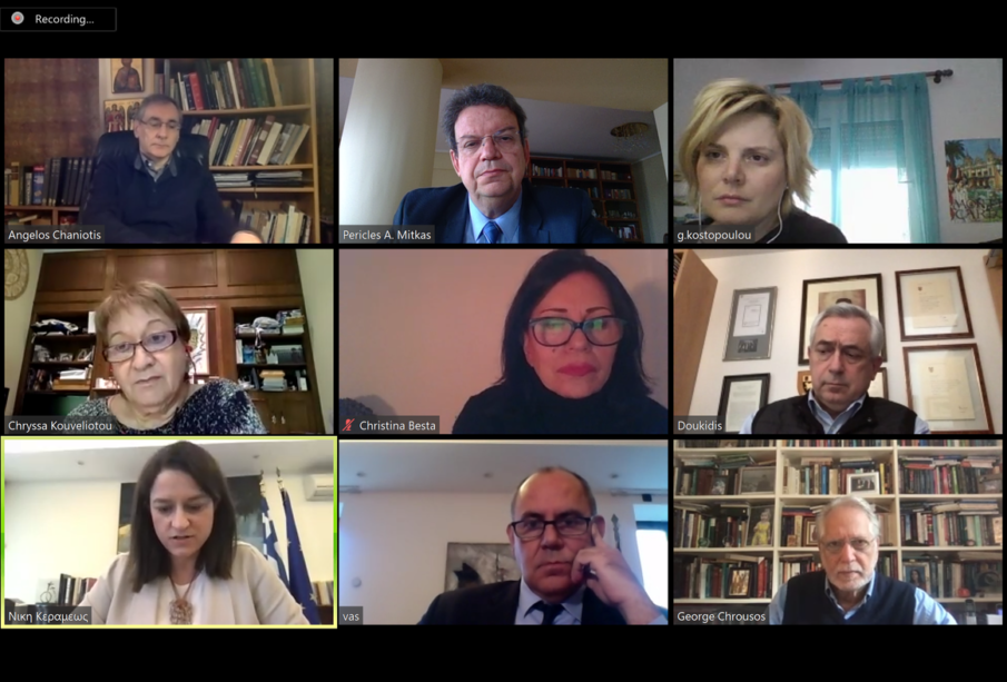 Η πολιτική ηγεσία του Υπουργείου Παιδείας συνομίλησε με τον Πρόεδρο της ΕΘΑΑΕ, Καθηγητή κ. Περικλή Μήτκα και τα μέλη του Ανωτάτου Συμβουλίου, κ.κ. Γεώργιο Χρούσο, ομότιμο Καθηγητή Ιατρικής Σχολής του ΕΚΠΑ, Άγγελο Χανιώτη, Καθηγητή Αρχαίας Ιστορίας και Κλασικών Σπουδών στο Ινστιτούτο Προηγμένων Μελετών του Princeton, Χρύσα Κουβελιώτου, Καθηγήτρια και διευθύντρια του Ινστιτούτου Επιστημών Αστρονομίας, Φυσικής και Στατιστικής του Πανεπιστημίου George Washington, και Γιώργο Δουκίδη, Καθηγητή στο Τμήμα Διοικητικής Επιστήμης και Τεχνολογίας του Οικονομικού Πανεπιστημίου Αθηνών.