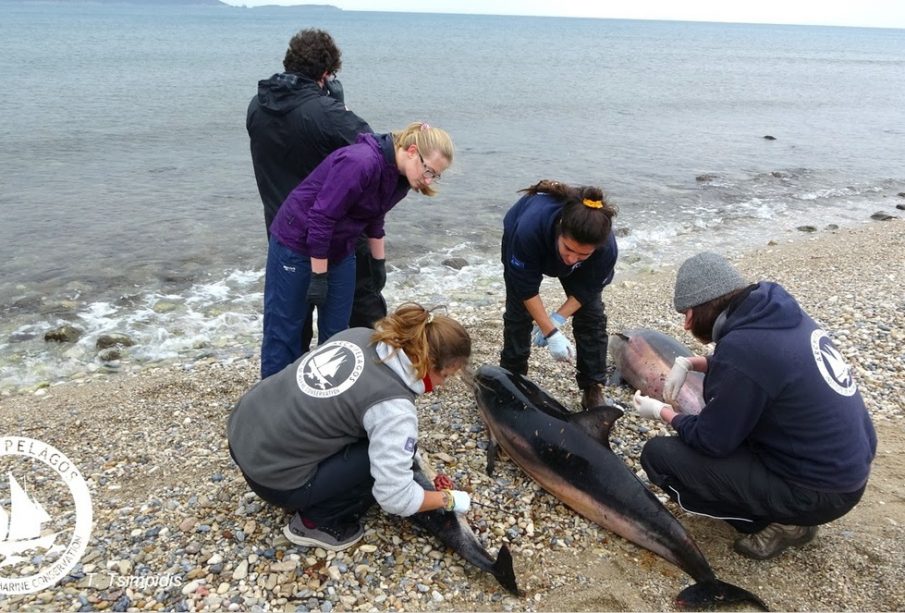 Τρία νεκρά ζωνοδέλφινα, δύο ενήλικα θηλυκά και ένα νεαρό αρσενικό, εντοπίστηκαν στις νοτιοανατολικές ακτές της Σάμου. Εκτιμάται ότι οι έντονοι βοριάδες σε συνδυασμό με τους ισχυρούς νότιους ανέμους τα παρέσυραν για τουλάχιστον τρεις ημέρες, πριν καταλήξουν εκεί από άλλη περιοχή του Αιγαίου. Η ομάδα Άμεσης Ανταπόκρισης του Ινστιτούτου Θαλάσσιας Προστασίας Αρχιπέλαγος βρέθηκε στο σημείο που εντοπίστηκαν, ώστε να διερευνήσει τα αίτια θανάτου τους. |