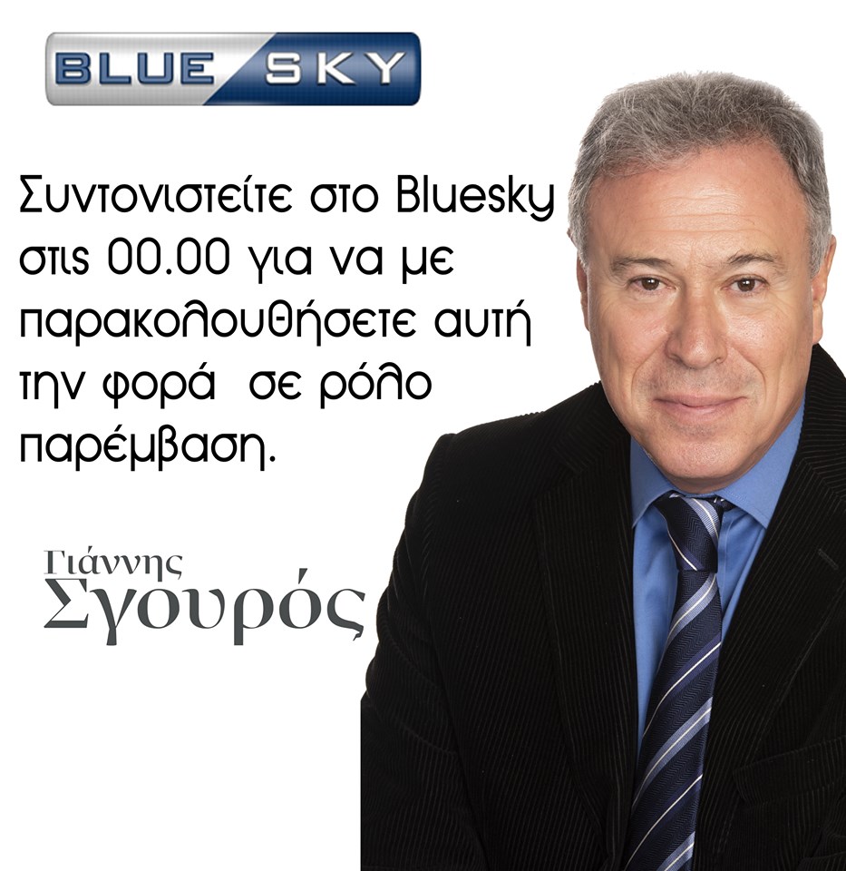 Δική του εκπομπή στο BLUE SKY εν όψει εθνικών εκλογών έχει ο Γιάννης Σγουρός , τώρα αν θα το συνεχίσει είναι μια άλλη ιστορία καθώς πολλά ακούγονται περί δικής του υποψηφιότητας…