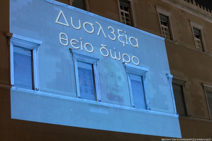 Ευρωπαϊκή Ημέρα Ευαισθητοποίησης για τη Δυσλεξία σήμερα και η πρόσοψη του κτιρίου της Βουλής φωταγωγήθηκε με το σύνθημα «Δυσλ3ξία – Θείο Δώρο», σε συμβολικό μπλε-τιρκουάζ φόντο, ως ένδειξη στήριξης και ενθάρρυνσης της συνεχούς προσπάθειας των δυσλεξικών να ξεπεράσουν τις δυσκολίες που αντιμετωπίζουν.