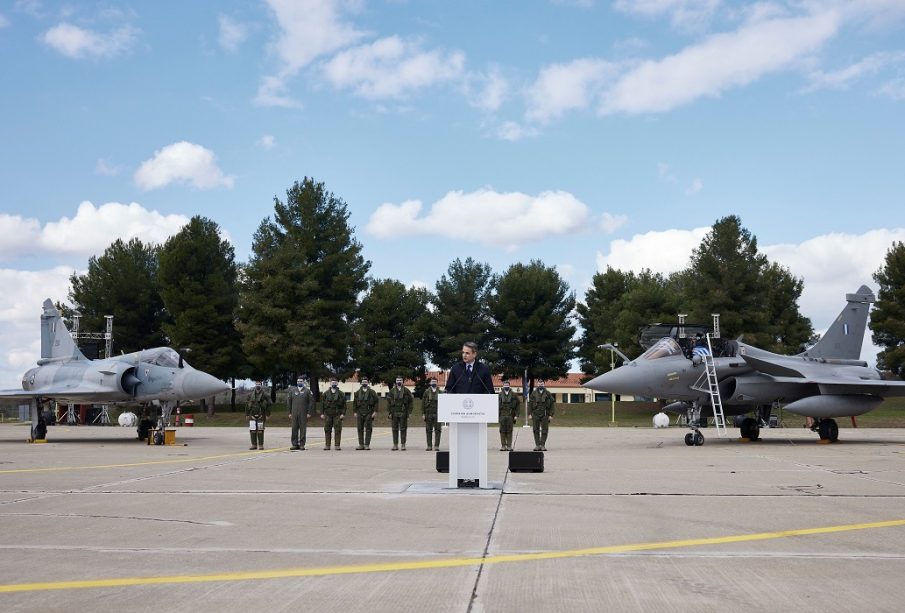«Πολλαπλασιαστή ισχύος που αναβαθμίζει τη χώρα μας σε επίπεδο επιχειρησιακό, τεχνολογικό, αλλά και γεωπολιτικό», χαρακτήρισε ο Πρωθυπουργός Κυριάκος Μητσοτάκης τα νέα μαχητικά Rafale κατά τον χαιρετισμό του στην τελετή παραλαβής των πρώτων έξι αεροσκαφών στην Τανάγρα.
