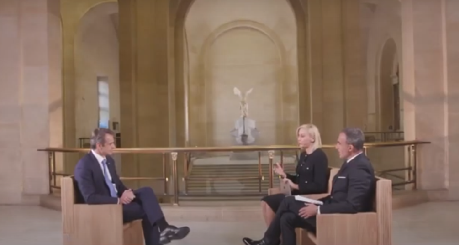 Αποκλειστική συνέντευξη παραχώρησε ο πρωθυπουργός Κυριάκος Μητσοτάκης στην Αντριάνα Παρασκευοπούλου και το Νίκο Αλιάγα, για την ΕΡΤ, στο Λούβρο.