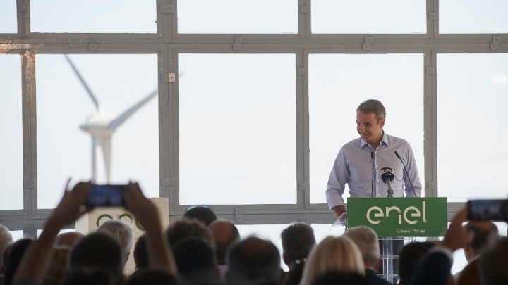 Στόχος της κυβέρνησης είναι η Ελλάδα να γίνει πρωτοπόρα στις Ανανεώσιμες Πηγές Ενέργειας, όχι μόνο στην πράσινη αλλά και στη γαλάζια ανάπτυξη με την αξιοποίηση και των θαλασσών, τόνισε ο πρωθυπουργός Κυριάκος Μητσοτάκης μιλώντας σήμερα στα εγκαίνια του συμπλέγματος των αιολικών πάρκων της Enel Green Power στον Καφηρέα.
