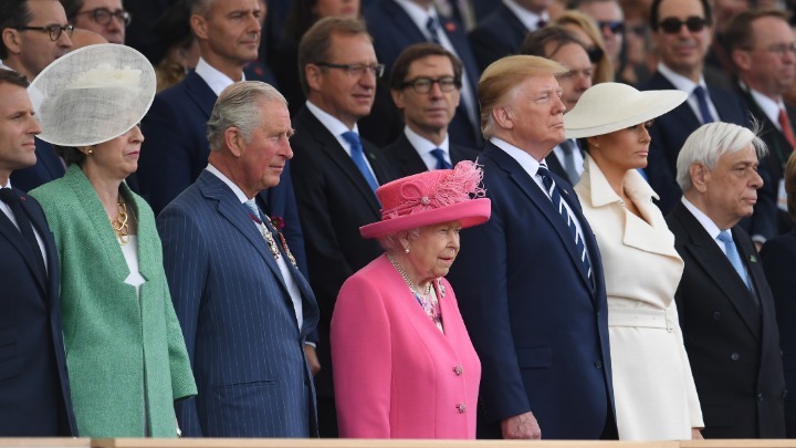 The Queen today joins The Prince of Wales, @potus and @Flotus on Day 3 of #USstatevisit, as well as Heads of State, Heads of Government and Representatives of Leaders of the Allied Nations who have come together to honour veterans. #DDAY75 pic.twitter.com/lnLEbhoZ6B