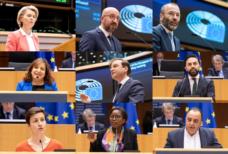 Αρκετοί ευρωβουλευτές έθιξαν την διαχείριση της πανδημίας από την ΕΕ (ιδίως το θέμα των εμβολιασμών) και άλλα θέματα της ημερήσιας διάταξης του Ευρωπαϊκού Συμβουλίου. Η συντριπτική πλειονότητα των ομιλητών ωστόσο χρησιμοποίησε τον χρόνο της για να καταδικάσει την εικόνα από την πρόσφατη επίσκεψη στην Άγκυρα, όπου η πρόεδρος της Επιτροπής βρέθηκε χωρίς θέση δίπλα στους δύο άνδρες ομολόγους της, καθώς και την οπισθοδρόμηση της Τουρκίας όσον αφορά τα δικαιώματα των γυναικών.