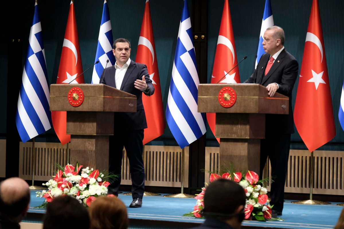 «Είμαστε ευχαριστημένοι που βλέπουμε τον Έλληνα πρωθυπουργό και την αντιπροσωπεία του στη χώρα μας. Θέλω να καλωσορίσω στην Τουρκία τον πρωθυπουργό και την αντιπροσωπεία του» δήλωσε ο πρόεδρος της Τουρκίας Ρετζέπ Ταγίπ Ερντογάν κατά την κοινή συνέντευξη Τύπου που ακολούθησε των διευρυμένων συνομιλιών ανάμεσα στις αντιπροσωπείες των δύο χωρών.