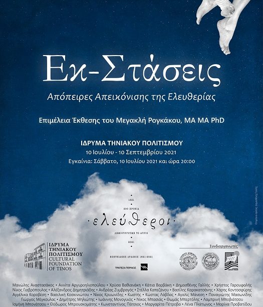 Το Ίδρυμα Τηνιακού Πολιτισμού σε συνεργασία με το Ίδρυμα Κερκυραϊκής Κληρονομιάς και με την ευγενική χορηγία της Τράπεζας Πειραιώς παρουσιάζει την εικαστική έκθεση «Εκ-Στάσεις: Απόπειρες Απεικόνισης της Ελευθερίας» υπό την επιμέλεια του Δρος Ιστορικού Τέχνης Μεγακλή Ρογκάκου.