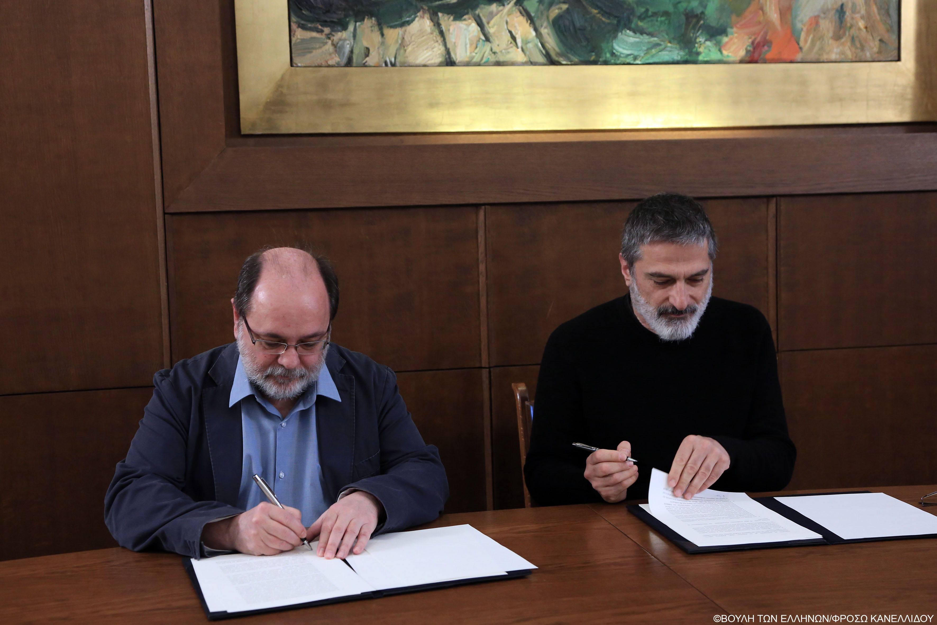 Στο πλαίσιο αυτό, ο Γενικός Γραμματέας της Βουλής, Κώστας Αθανασίου, και ο Καλλιτεχνικός Διευθυντής της Εθνικής Λυρικής Σκηνής, Γιώργος Κουμεντάκης, υπέγραψαν σήμερα σύμφωνο συνεργασίας, προκειμένου να δοθεί η δυνατότητα, μέσω του Τηλεοπτικού Σταθμού της Βουλής, σε πολίτες της ελληνικής περιφέρειας, με έμφαση στις παραμεθόριες περιοχές, να παρακολουθήσουν –σε κλειστούς χώρους που επιλέγουν οι Δήμοι– παραστάσεις της Εθνικής Λυρικής Σκηνής, σε απευθείας σύνδεση με τις εγκαταστάσεις της Εθνικής Λυρικής Σκηνής στην Αθήνα και μάλιστα με ελεύθερη είσοδο.