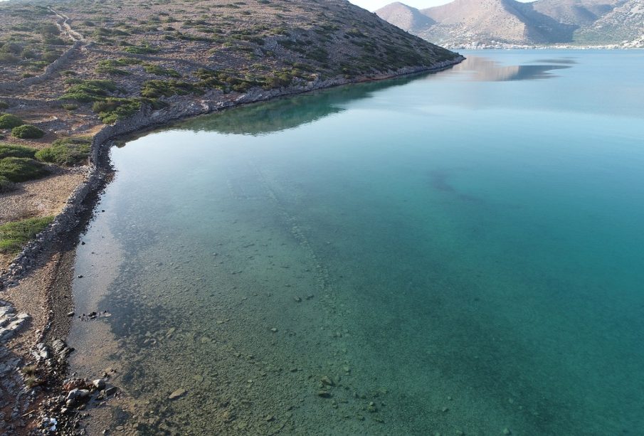 Λείψανα ποντισμένων κτηρίων στον βυθό του όρμου του Πόρου Ελούντας