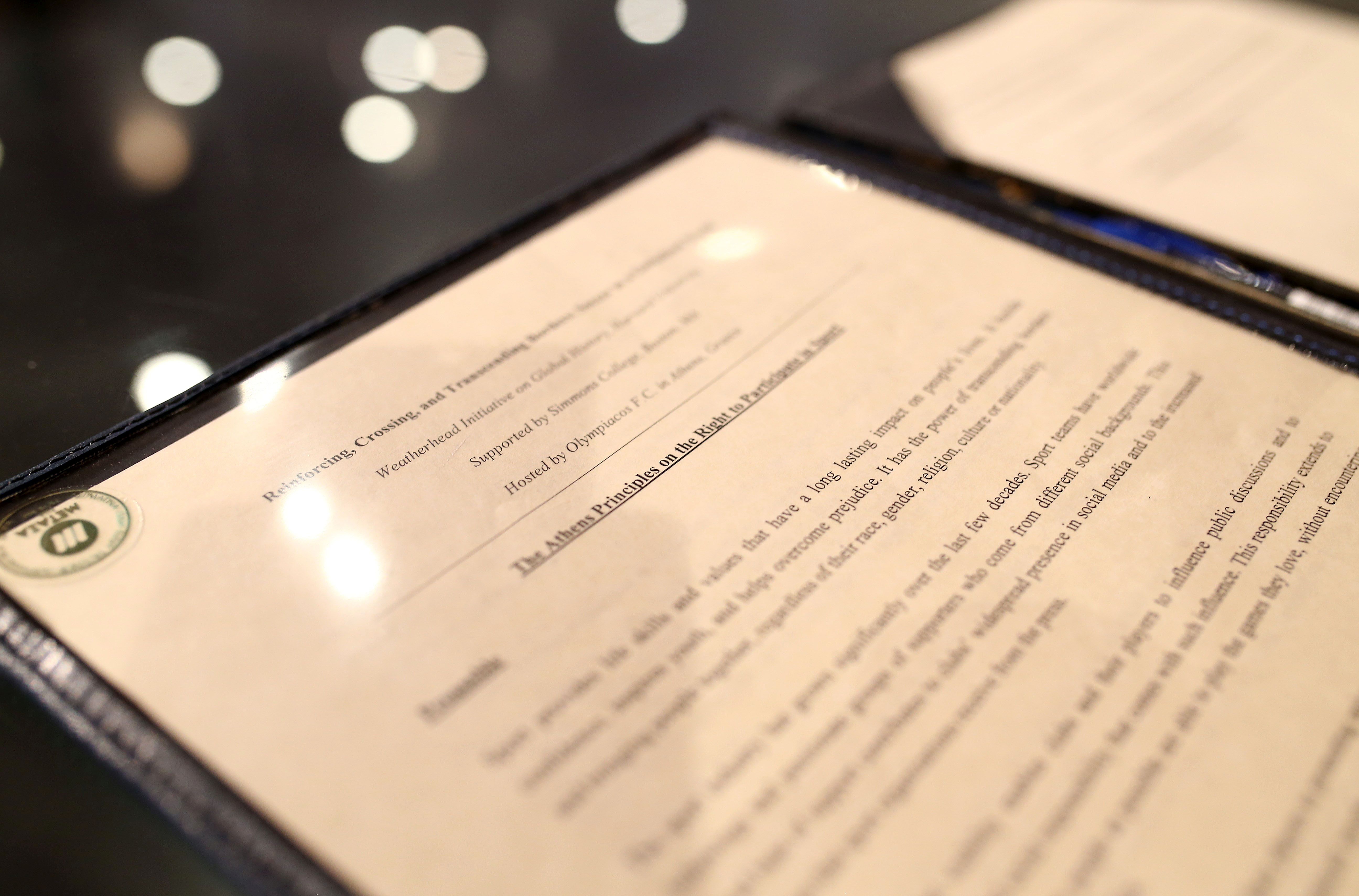 Η πρωτοβουλία του Προέδρου του Ολυμπιακού, Βαγγέλη Μαρινάκη, να φιλοξενήσει στην Ελλάδα το Πανεπιστήμιο του Χάρβαρντ, το συνέδριο «Ενδυναμώνοντας, Περνώντας και Υπερβαίνοντας τα Σύνορα: Το Ποδόσφαιρο στον Κόσμο της Παγκοσμιοποίησης» και να υπογράψει πρώτος την «Αρχή των Αθηνών» για το δικαίωμα συμμετοχής στον αθλητισμό, την οποία συνέταξε ο ακαδημαϊκός κ. Χάναμ, βρίσκει ήδη ανταπόκριση! Και μάλιστα στο κορυφαίο, όπως αναμενόταν, επίπεδο, αφού η ιστορική Μπαρτσελόνα, ο σύλλογος με τα περισσότερα μέλη στον πλανήτη, συνυπογράφει την «Αρχή των Αθηνών», δια χειρός του προέδρου της Ζόζεπ Μπαρτομέου!
