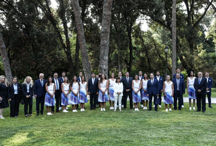 Υποδεχόμενη τους αθλητές και τις αθλήτριες στον κήπο του Προεδρικού Μεγάρου, η κυρία Σακελλαροπούλου έκανε την εξής δήλωση: