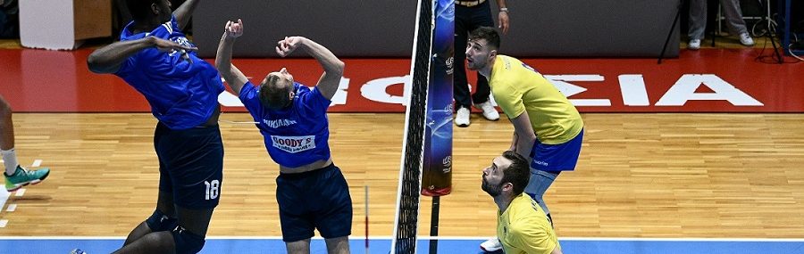 Η αμφίρροπη αναμέτρηση συνεχίστηκε και στο τρίτο σετ με τις δύο ομάδες να πηγαίνουν πόντο-πόντο μέχρι το 9-9. Εκεί οι φιλοξενούμενοι με δύο συνεχόμενους πόντους από Παπαδόπουλο και Πέιν πήραν για προβάδισμα δύο πόντων 11-9. Οι φιλοξενούμενοι βρήκαν τα απαραίτητα side outs και μετά από άουτ επίθεση του Μπατατζίμ πήραν «αέρα» τριών πόντων 19-16 με τον Νίκο Ζαλμά να καλεί τάιμ άουτ.