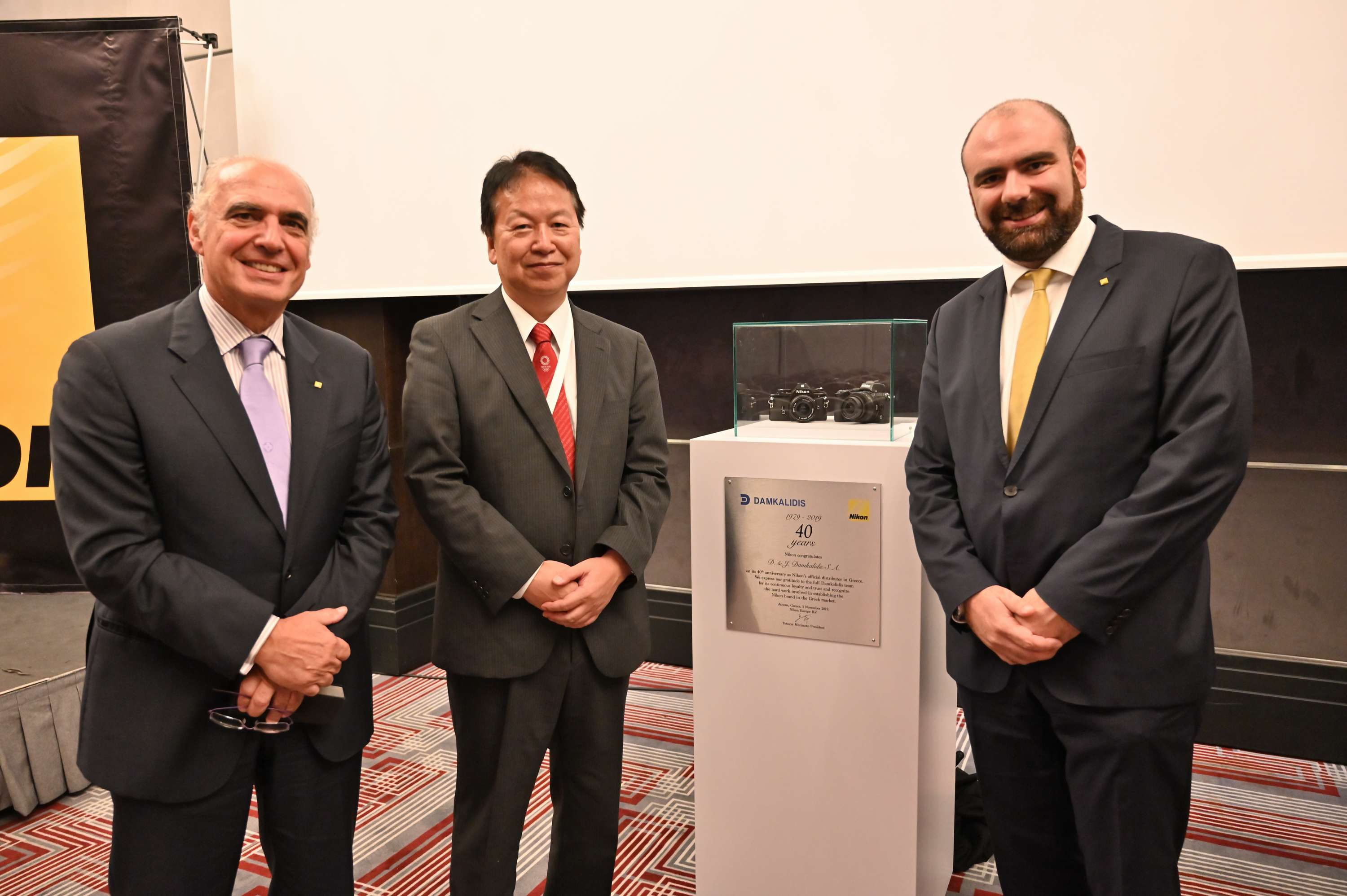 Εκ μέρους της Nikon, ο Πρόεδρος κ. Morimoto ευχαρίστησε για την εξαιρετική συνεργασία & απένειμε στην ΔΑΜΚΑΛΙΔΗΣ αναμνηστική πλακέτα για τα 40 χρόνια ευδόκιμης και πετυχημένης δραστηριότητας.