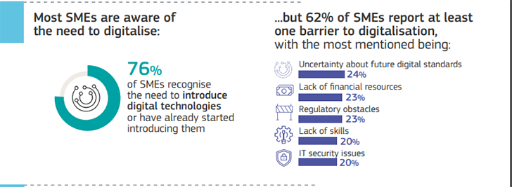 Εμπόδια στον δρόμο για την ψηφιοποίηση τους, συναντούν περισσότερες από έξι στις δέκα (62%) μικρομεσαίες επιχειρήσεις στην Ευρώπη, ανάμεσα τους και οι ελληνικές. Η διαπίστωση είναι αρκετά ανησυχητική, ειδικά σε μια εποχή, όπου – όπως έδειξε η πανδημία του COVID-19 – η ψηφιοποίηση δεν είναι πολυτέλεια, αλλά δρόμος για την επιβίωση.