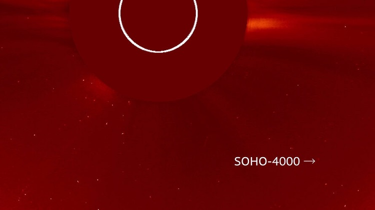 Χρησιμοποιώντας δεδομένα από την ESA / NASA Solar και Heliospheric Observatory, ή SOHO, μια Ευρωπαία επιστήμονας πολίτης εντόπισε το 4000 TH κομήτη στην ιστορία 25-έτους του διαστημικού σκάφους.