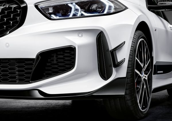 Ποικίλα αξεσουάρ ελαφρού βάρους με νέα εμφάνιση carbon και φινίρισμα high-gloss black υπογραμμίζουν τη σπορ εμφάνιση του αυτοκινήτου και ταυτόχρονα τονίζουν τις γραμμές του αμαξώματος. Επιπλέον, το εμπρός splitter M Performance, η πίσω αεροτομή οριζόντιας ροής και τα αεροδυναμικά πτερύγια σε high-gloss black βελτιστοποιούν την αεροδυναμική, αυξάνοντας τις επιδόσεις του compact 5θυρου μοντέλου στον τομέα της δυναμικής συμπεριφοράς. Το ίδιο ισχύει και για το ένθετο των μαρσπιέ σε high-gloss black και τον πίσω διαχύτη από ελαφρύ ανθρακόνημα. Όλα τα αξεσουάρ M Performance σχεδιάστηκαν ειδικά για τη νέα BMW Σειρά 1 και τελειοποιήθηκαν στην αεροδυναμική σήραγγα. Τα χειροποίητα, υψηλής ποιότητας εξαρτήματα από carbon, αφού κατασκευαστούν με απόλυτη ακρίβεια, περνούν από μία διαδικασία στεγανοποίησης με διαφανές βερνίκι πριν το τελικό γυάλισμα. Το ίδιο ισχύει και για τα καλύμματα εξωτερικών καθρεπτών M Performance, των οποίων ο high-tech χαρακτήρας τα καθιστά άκρως εντυπωσιακά. Η γκάμα των αξεσουάρ BMW M Performance περιλαμβάνει επίσης τη νέα μάσκα ‘νεφρών’ M με σχεδίαση πλέγματος, για τοποθέτηση aftersales.