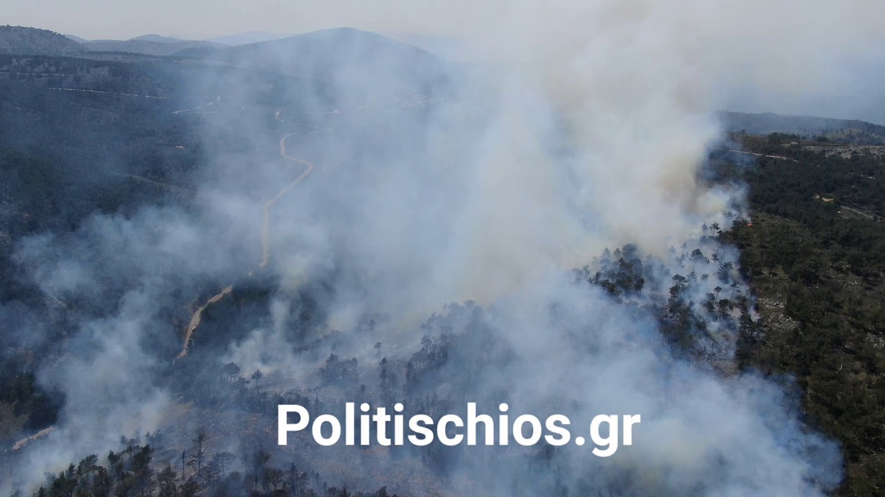 Χίος: Μεγάλη πυρκαγιά καίει δάσος στην περιοχή του Αναβάτου