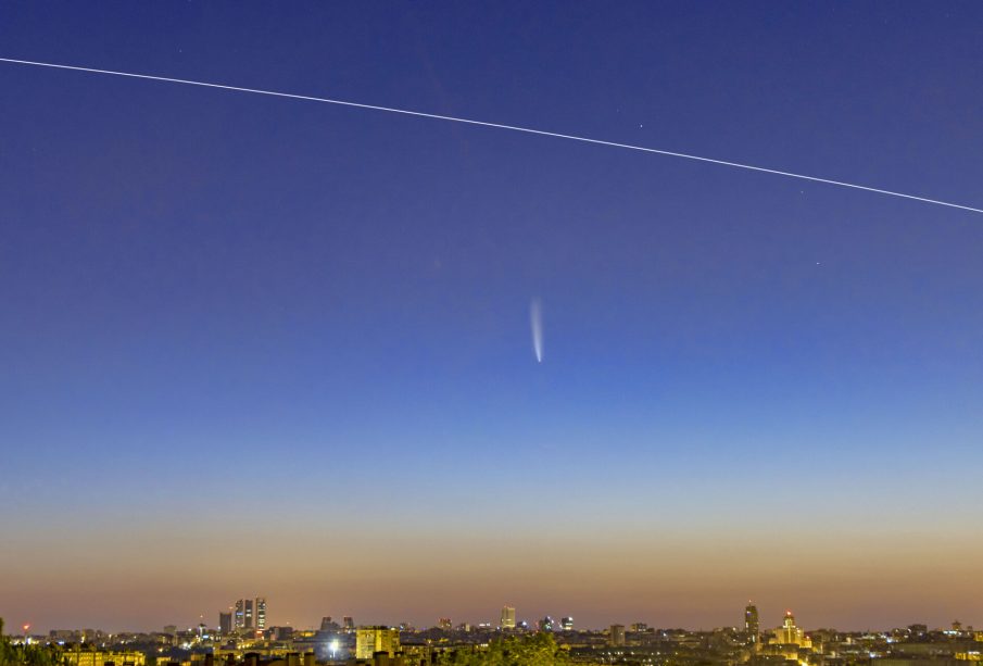 Οι Skygazers σε όλο το Βόρειο Ημισφαίριο αντιμετωπίζονται με εκπληκτική θέα στο Comet Neowise καθώς εκτείνεται πέρα από τη Γη. Ο ερασιτέχνης αστροφωτογράφος Javier Manteca πήρε ένα μπόνους: ο Διεθνής Διαστημικός Σταθμός και ο κομήτης Neowise βλέπουν και οι δύο να διέρχονται από τη Μαδρίτη σε αυτή τη φωτογραφία που τραβήχτηκε στις 11 Ιουλίου.