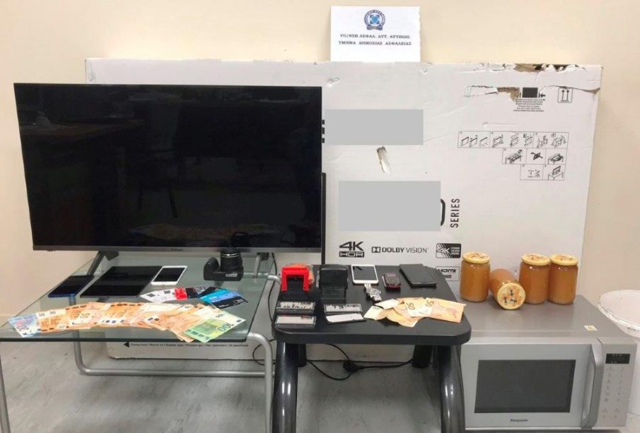 Κατασχέθηκαν μεταξύ άλλων το χρηματικό ποσό των -2.250- ευρώ, Ι.Χ. Φορτηγό, -2- Ι.Χ.Ε. αυτοκίνητα, -31- κινητά τηλέφωνα, τηλεοράσεις, tablet , φωτογραφική μηχανή, φυσίγγια, πλήθος εγγράφων, τραπεζικών καρτών και εμπορευμάτων